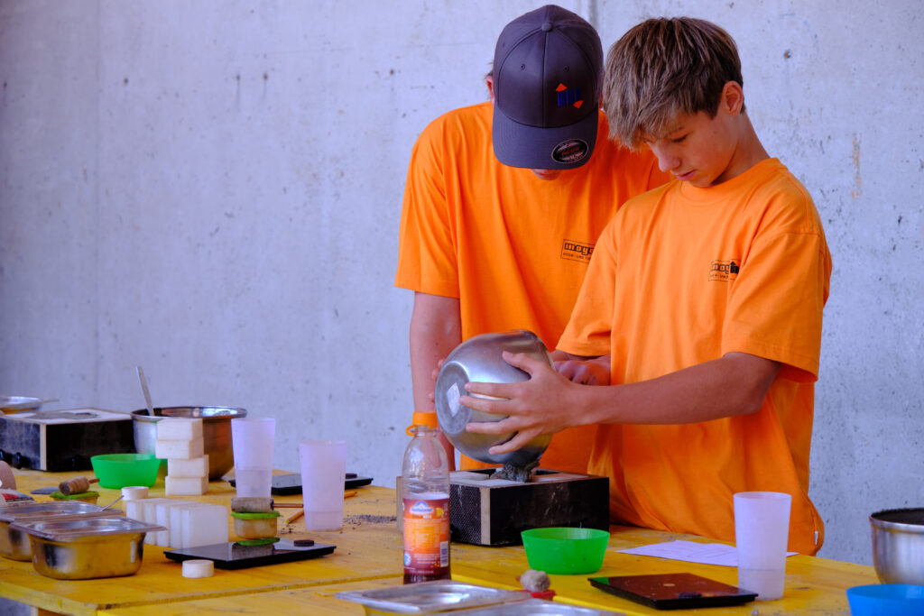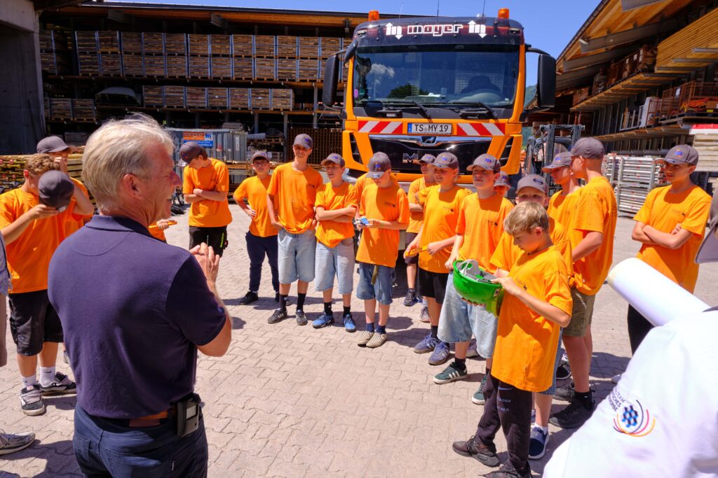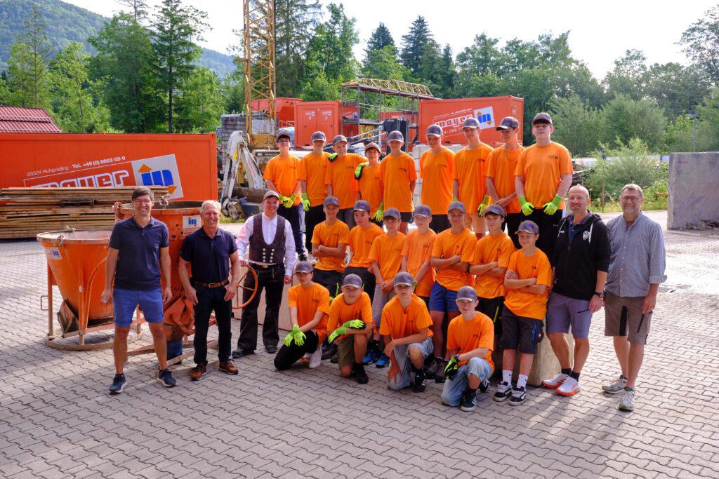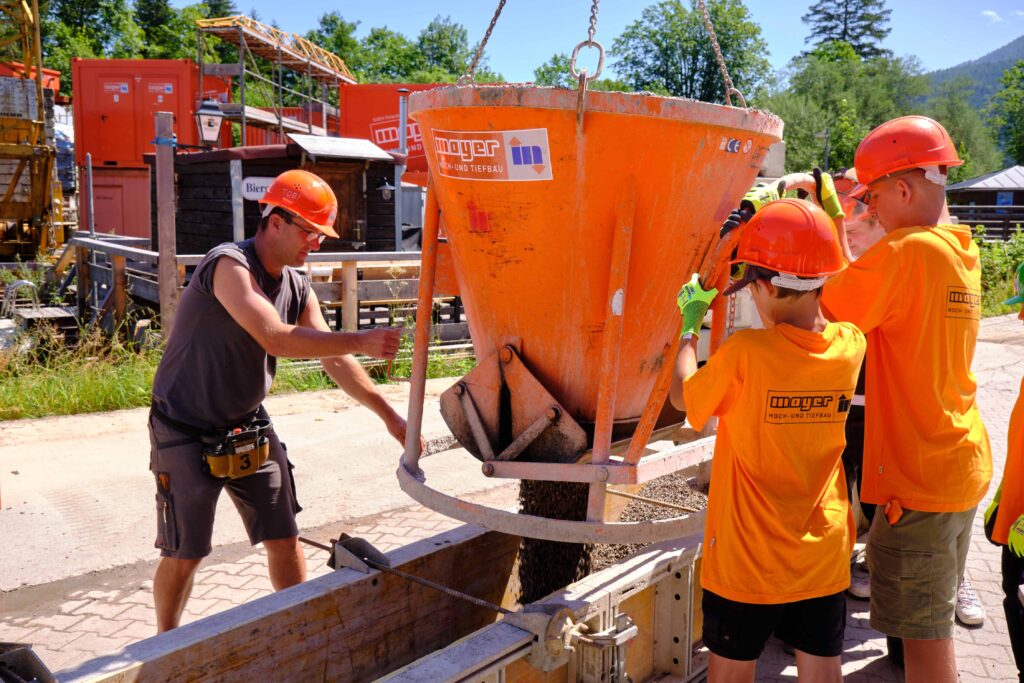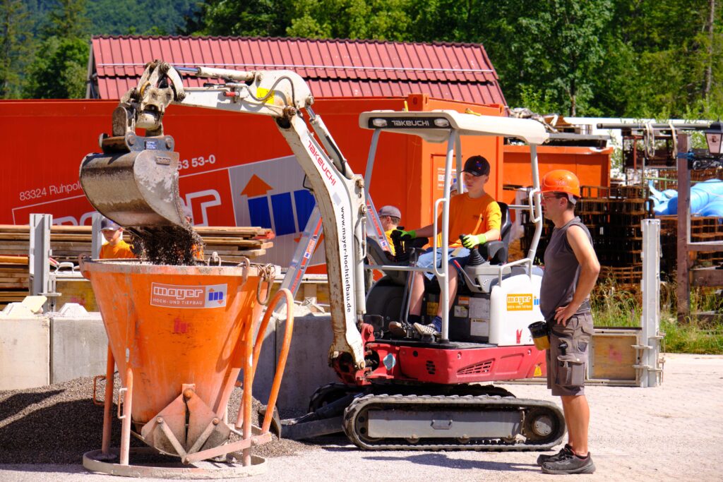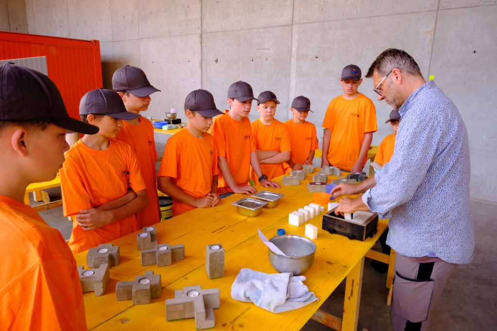 So durften die Schüler sich unter Anleitung an Minibagger, Gabelstapler und LKW-Kran probieren und erhielten dabei Einblicke in die Baubranche. Außerdem durften die Schüler einen Teelichthalter aus Beton herstellen.